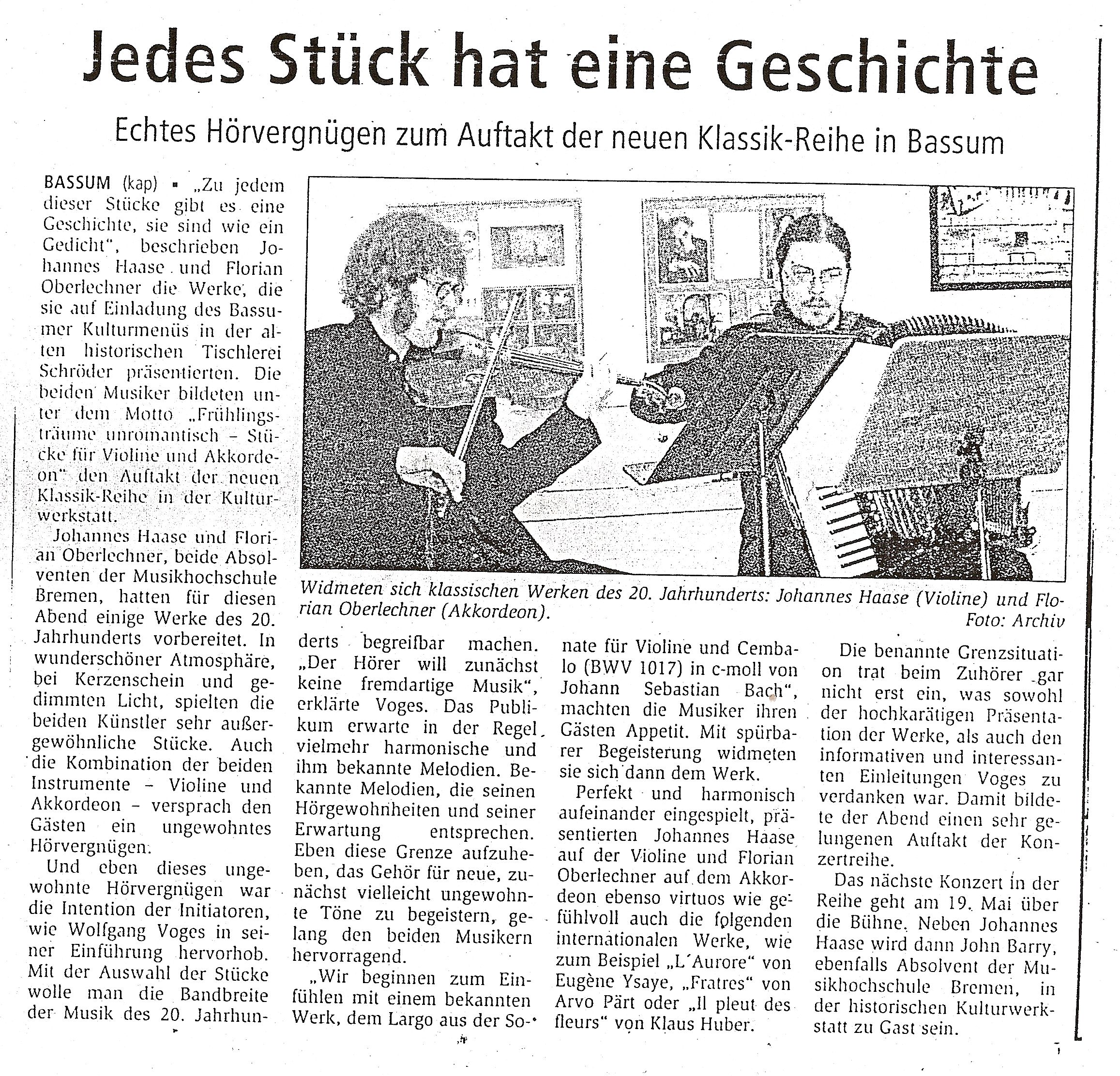 Weserkurier: "...Florian Oberlechner brilliert am Akkordeon..."
